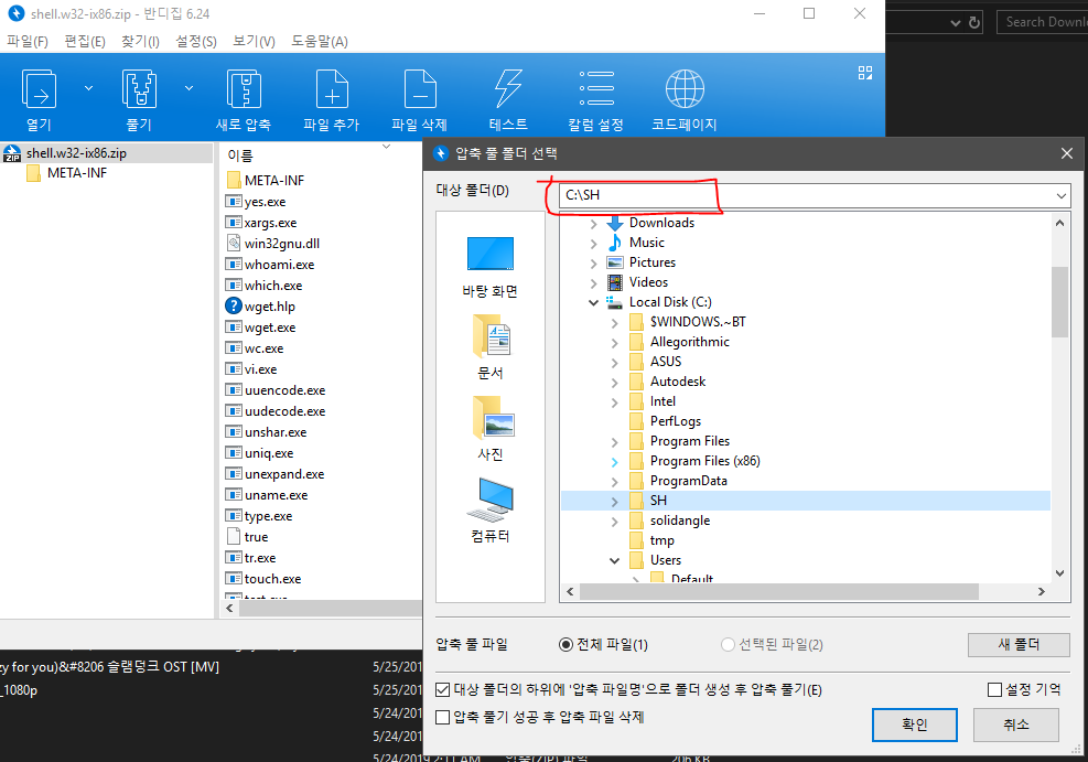 필자는 C:/SH 폴더를 만들어서 압축을 풀어줬다. 어디다 압축을 풀던 상관은 없지만, 폴더 위치를 잘 기억해주자.